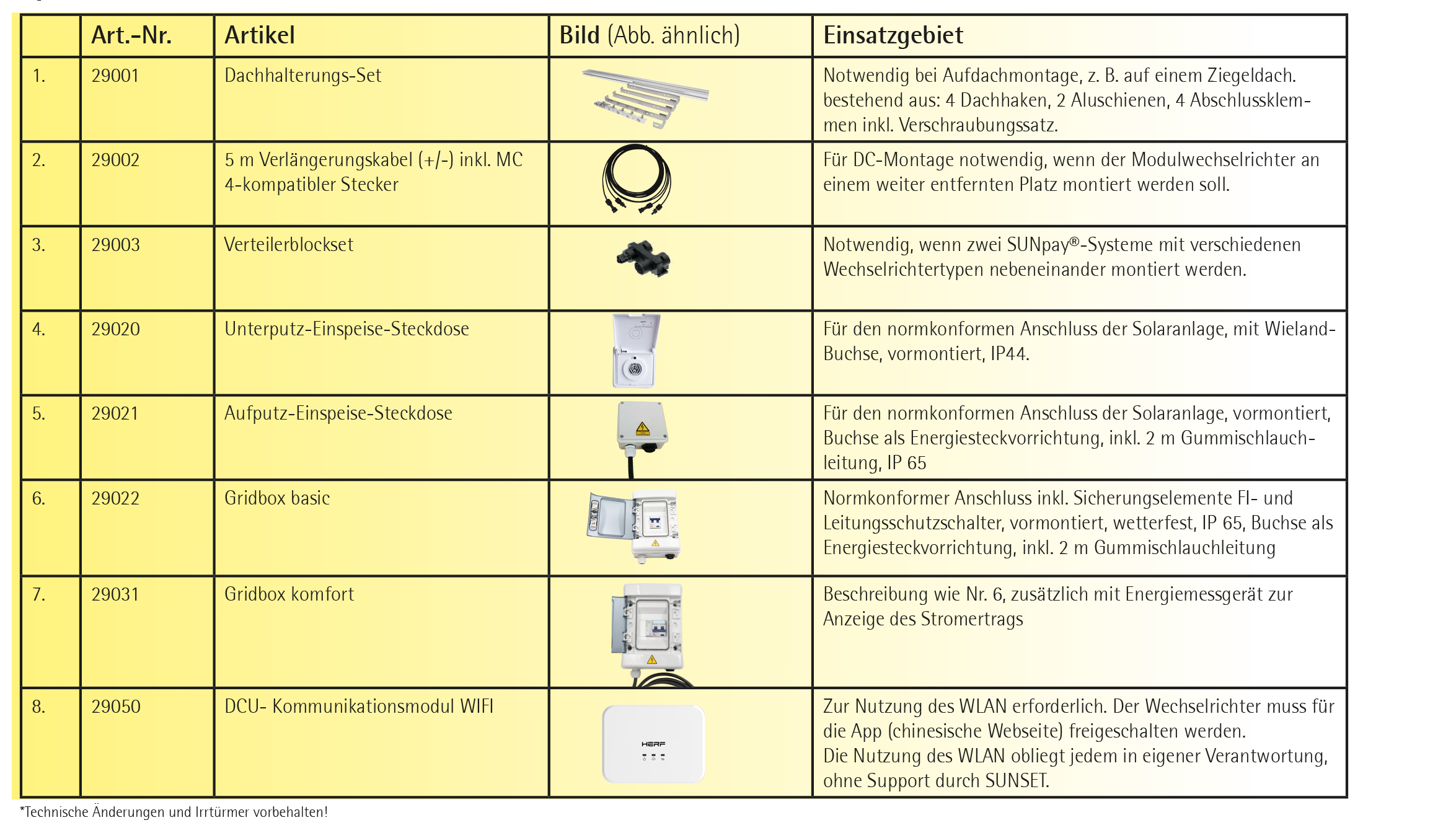 Mittels eines optional erhältlichen DCU-Moduls, ist der Wechselrichter prinzipiell WLAN fähig und muss für die App (chinesische Webseite) freigeschaltet werden. Die Nutzung des WLAN obliegt jedem in eigener Verantwortung, ohne Support durch SUNSET.